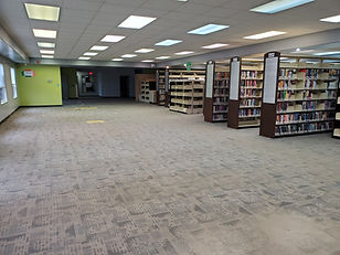 The library got new display shelves (purple), new children's shelving, new flooring in the main library, and wireless printing.